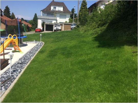 Ein regelmässiger Schnitt fördert die Narbendichte des Rasens, weil die Gräser (je nach Art) dazu angeregt werden, vermehrt Seitentriebe oder Ausläufer zu bilden. Gerne übernehmen wir die regelmässige Pflege Ihrer Rasenfläche und mähen, vertikutieren und düngen diese je nach Gegebenheiten.